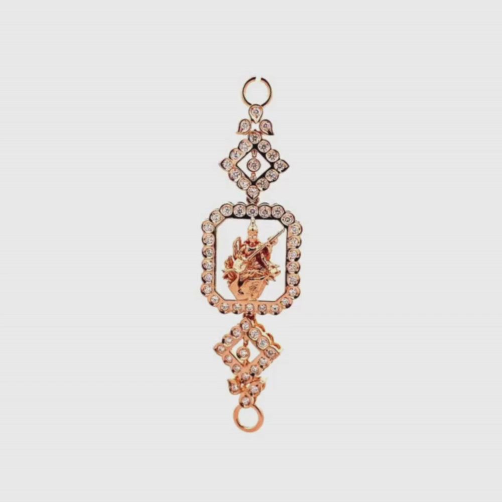 The Vidya Diamond Mugappu embodies traditional grace with a sophisticated touch. Featuring expertly set diamonds, this elegant piece adds a subtle sparkle that enhances your attire with cultural richness and timeless beauty. Perfect for special occasions, it brings a refined charm to any jewellery collection.